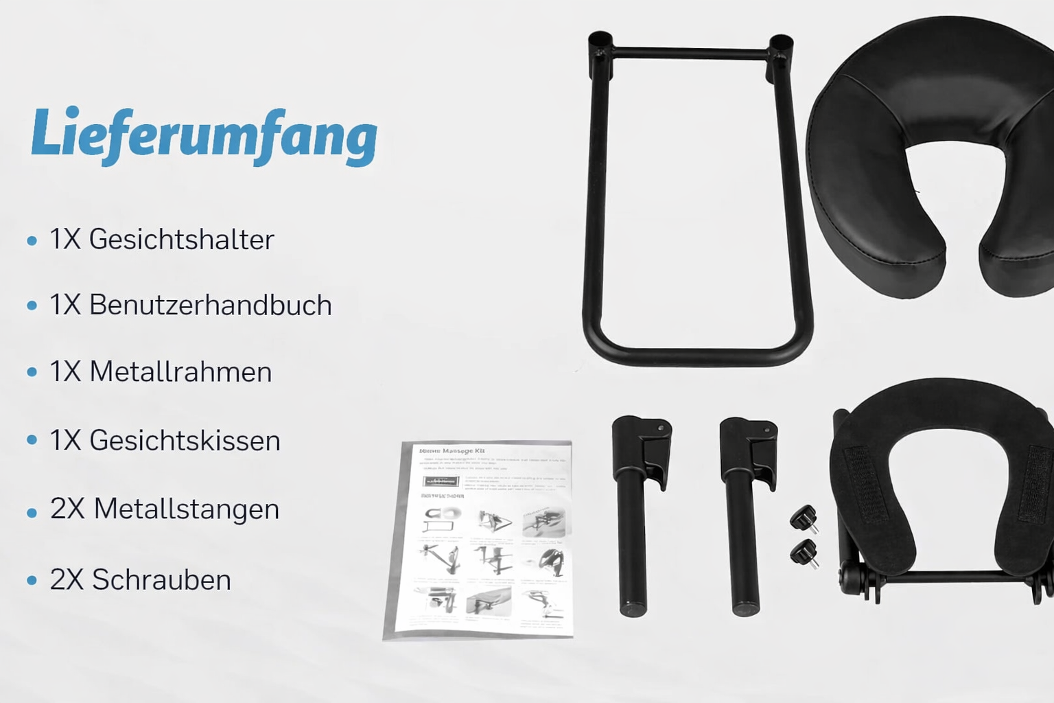 【KOMPLETTES ZUBEHÖRSET】Beinhaltet eine stabile Unterlage für die Matratze, eine verstellbare Kopfstützenhalterung für den Massagetisch sowie ein zweilagiges Memory-Schaum-Kissen – alle Komponenten eines Premium-Gesichtskissens für den Massagetisch.